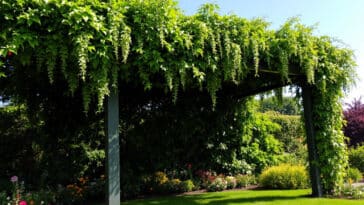 C’est le moment d’installer une pergola végétale : votre meilleur atout pour protéger pelouse et massifs de la canicule cet été