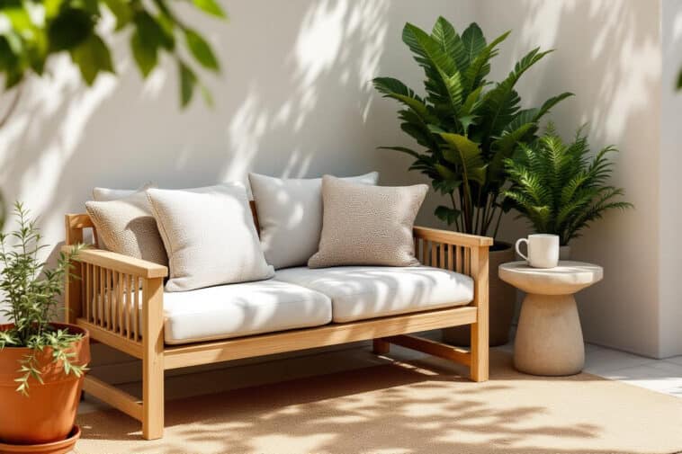 Un salon extérieur douillet, c’est aussi une histoire de coussins moelleux, de plaids, de tapis qui invitent à la détente. Cet été, misez sur des textiles recyclés : coton bio, lin réutilisé, ou matière synthétique issue du plastique collecté en mer. Le choix est vaste chez les marques engagées, que ce soit en ligne ou dans certains magasins de déco française.