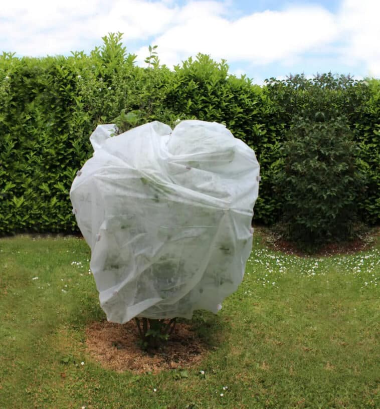 Pour les rosiers et massifs, recouvrez entièrement la plante puis regroupez le voile au pied pour limiter les infiltrations d’air froid. Il est inutile de trop serrer ou d’enfermer hermétiquement : le tissu est respirant, il protège sans piéger l’humidité.