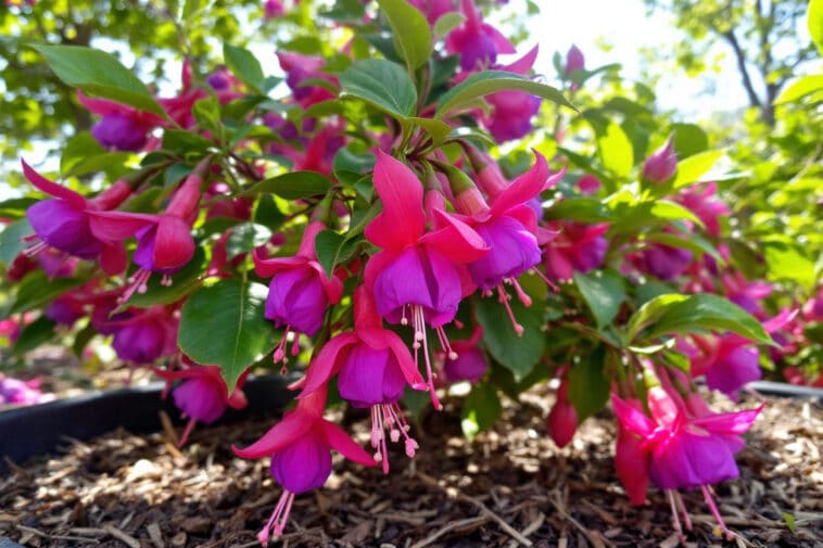 Évitez les massifs trop serrés qui retiennent la chaleur et favorisent les maladies. Un léger espacement entre les plantes, allié à un paillis bien posé, maintient l’atmosphère fraîche autour des fuchsias, tout en limitant la transpiration.