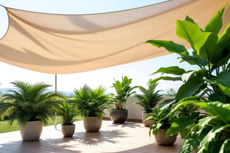 Le trio gagnant se compose des voiles d’ombrage pour leur effet design et aérien, des parasols orientables faciles à repositionner, et des canisses en fibres naturelles qui tamisent la lumière tout en créant une belle ambiance méditerranéenne. L’important est de mixer les formats et hauteurs : un grand voile pour couvrir le cœur de la terrasse, un parasol d’appoint pour le coin lecture, ou une canisse à dérouler le long d’une rambarde côté soleil couchant.
